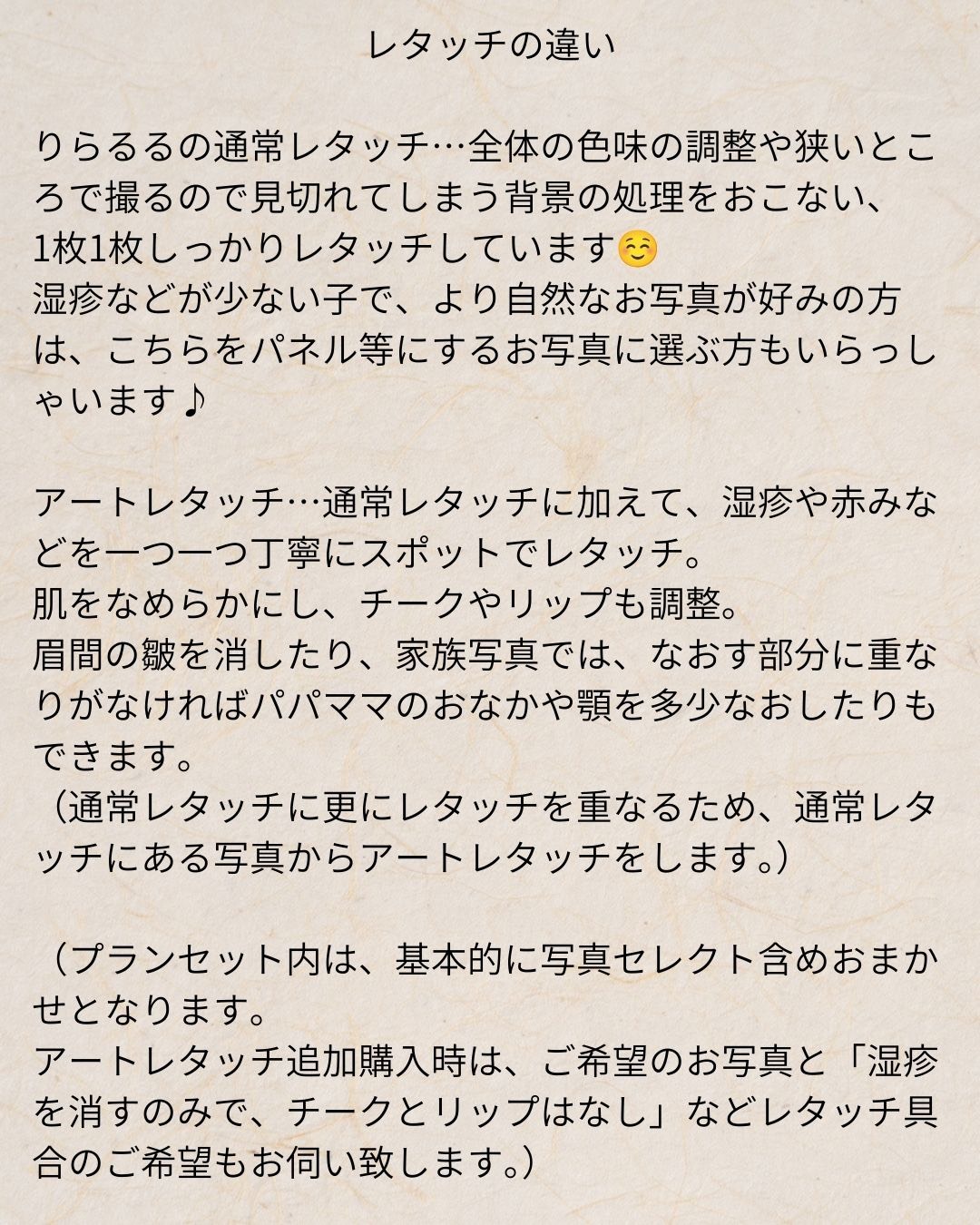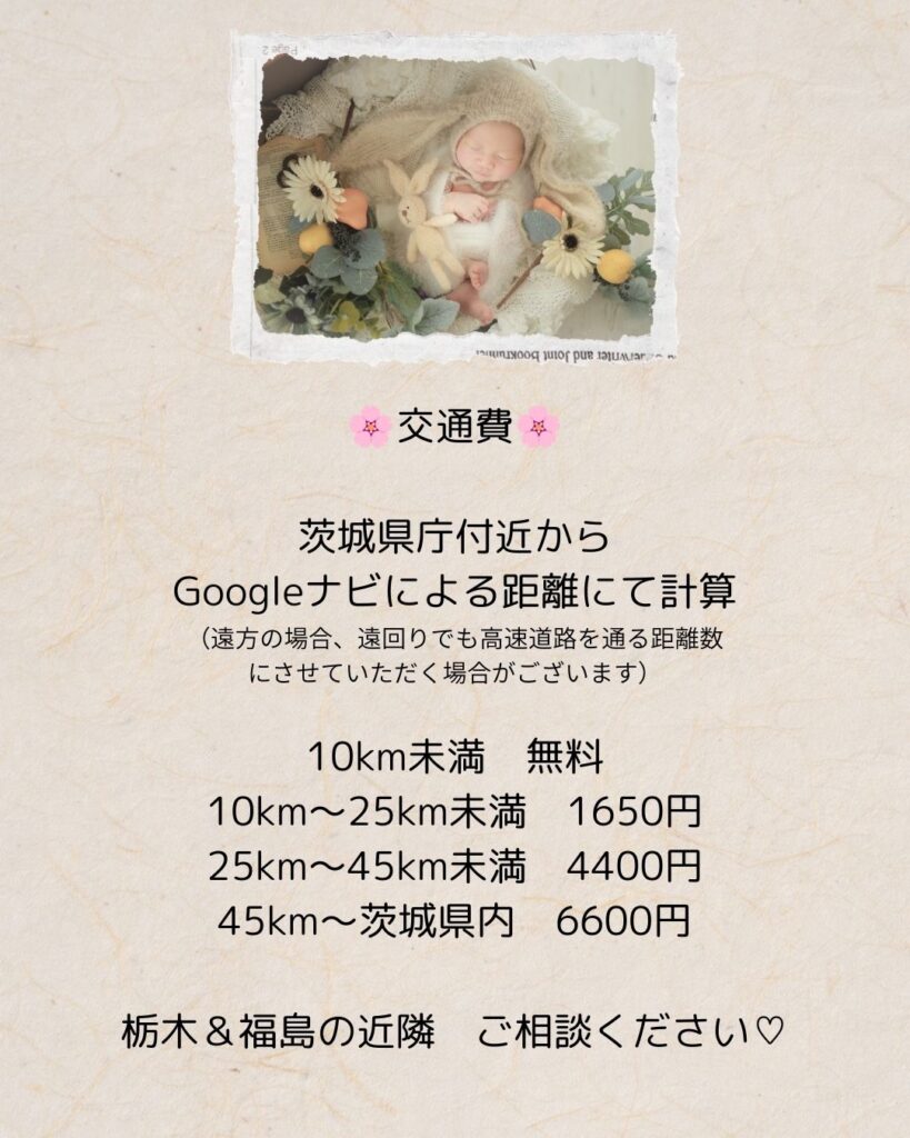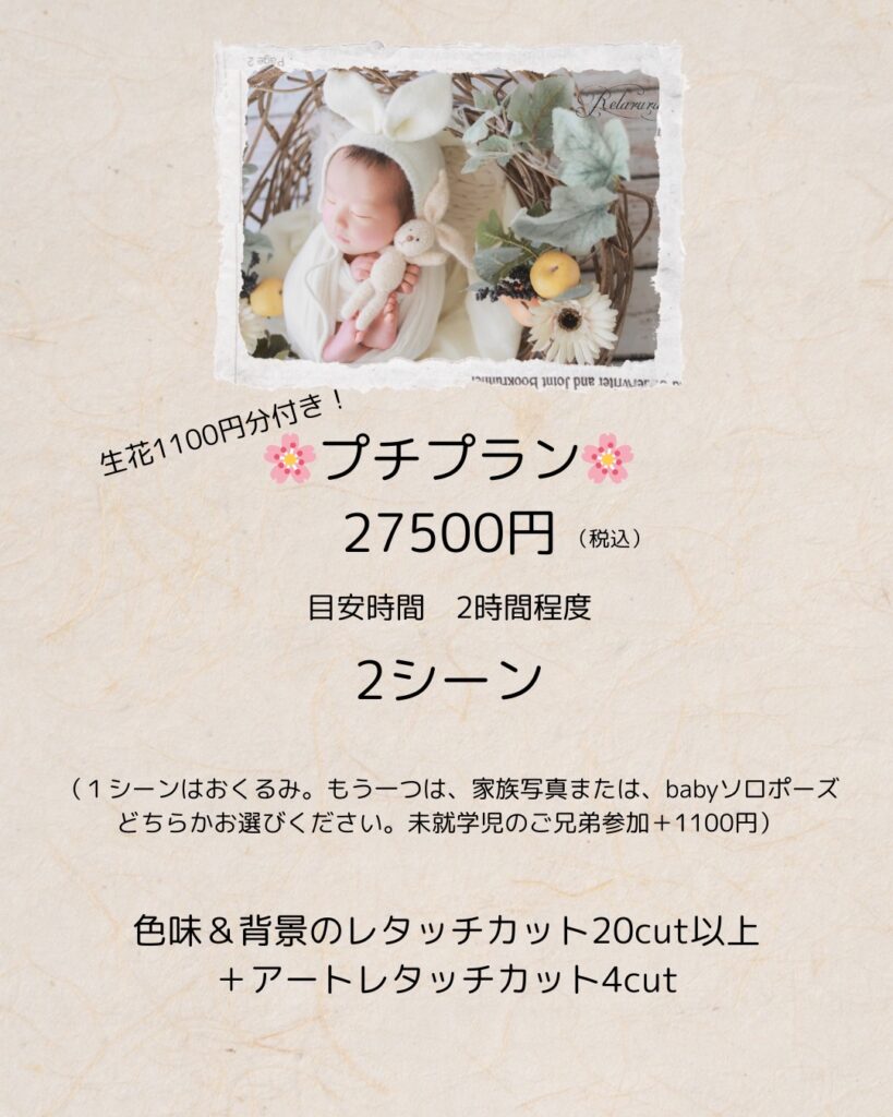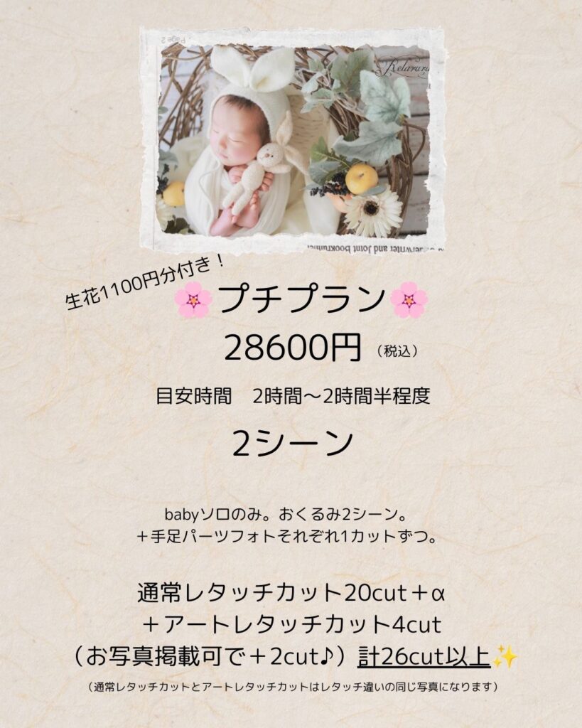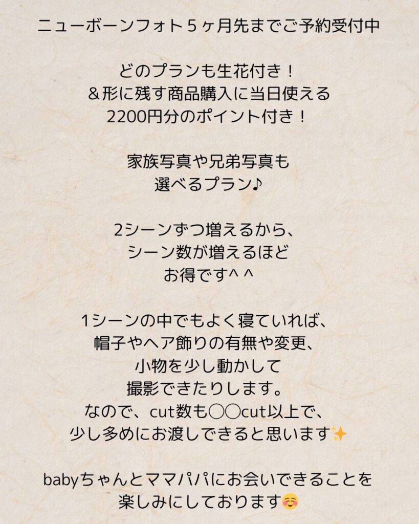 (未就学の兄弟・土日祝等のオプションや、交通費はポーズドニューボーンフォトと同じになります。)